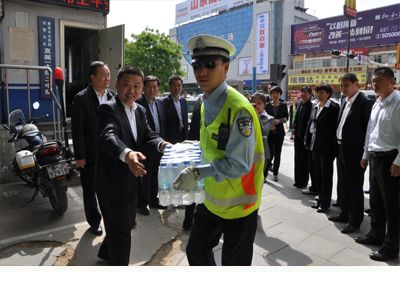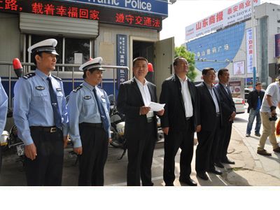 到達活動地點后,首先由集團董事長韓峰同志作講話,隨后交警支隊東城