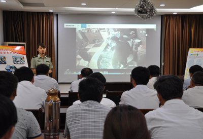 此次演練共有兩個部分內(nèi)容,部分由消防教官為公司職工帶來火災(zāi)視頻案